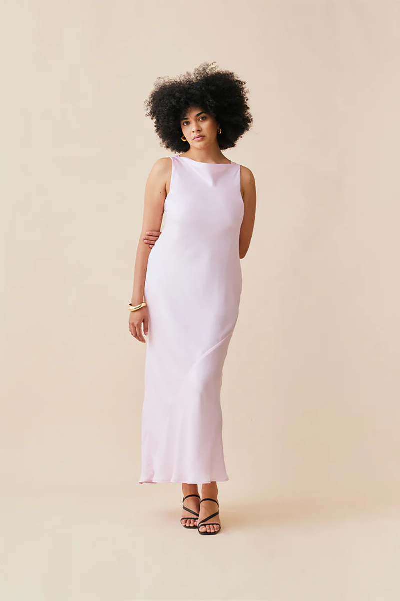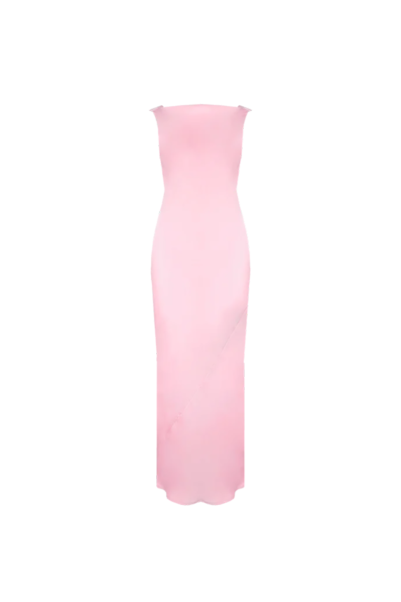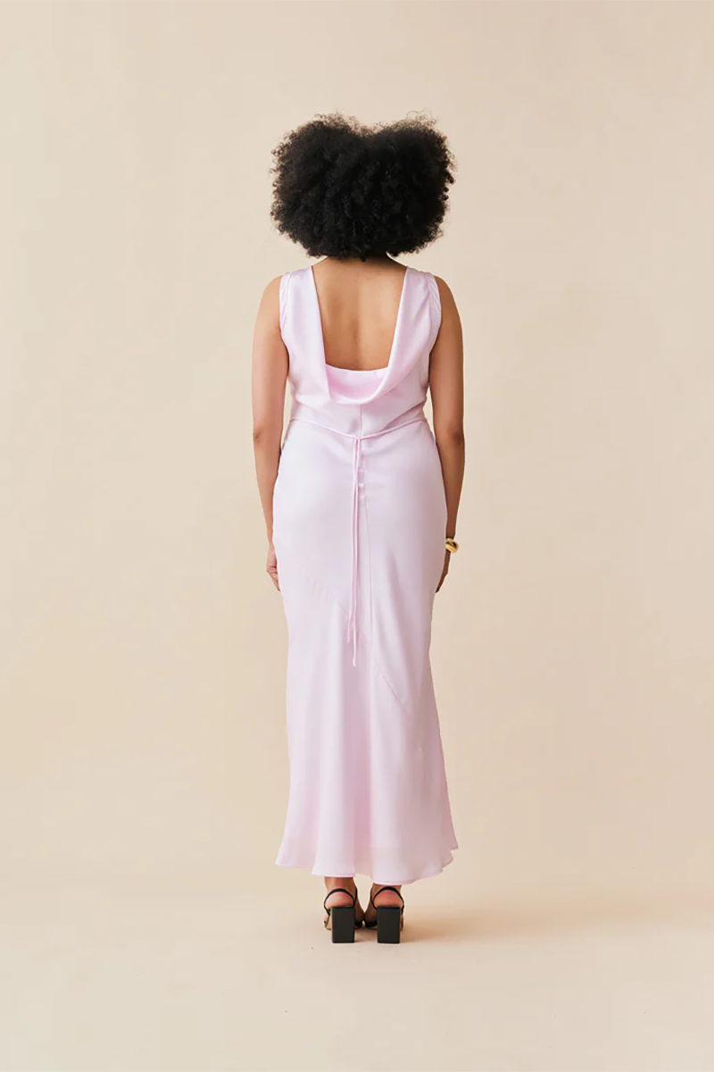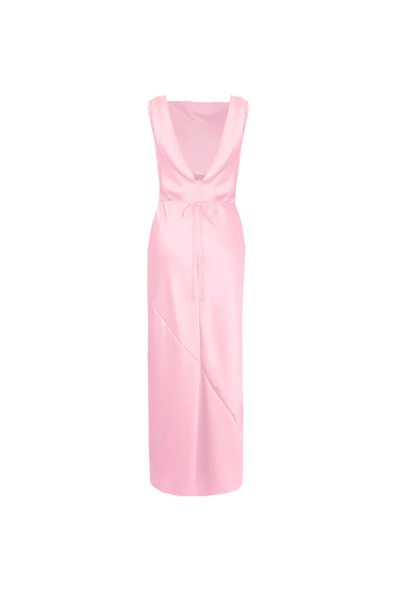 Our Firebird Cowl Gown from Ruby is a dreamy sleeveless midi dress crafted from stunning festival bloom pink satin. With a minimal silhouette and cowl back detail, this dress features a tie to cinch in the waist and is one of our favourites for weddings and ball season.