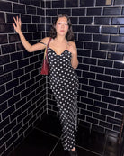 The Gloria Slip Dress by Ruby is the kind of piece you’ll keep reaching for, season after season. Cut on the bias for a flattering, fluid drape, it features a soft cowl neckline and a delicate double strap detail that finishes with a halter neck tie. Crafted in a black and white polka dot crepe with a silk-like feel, it moves beautifully with every step and offers a timeless touch of elegance. A side split adds just the right amount of ease, while the maxi length makes it versatile for both daytime wear and evening occasions.