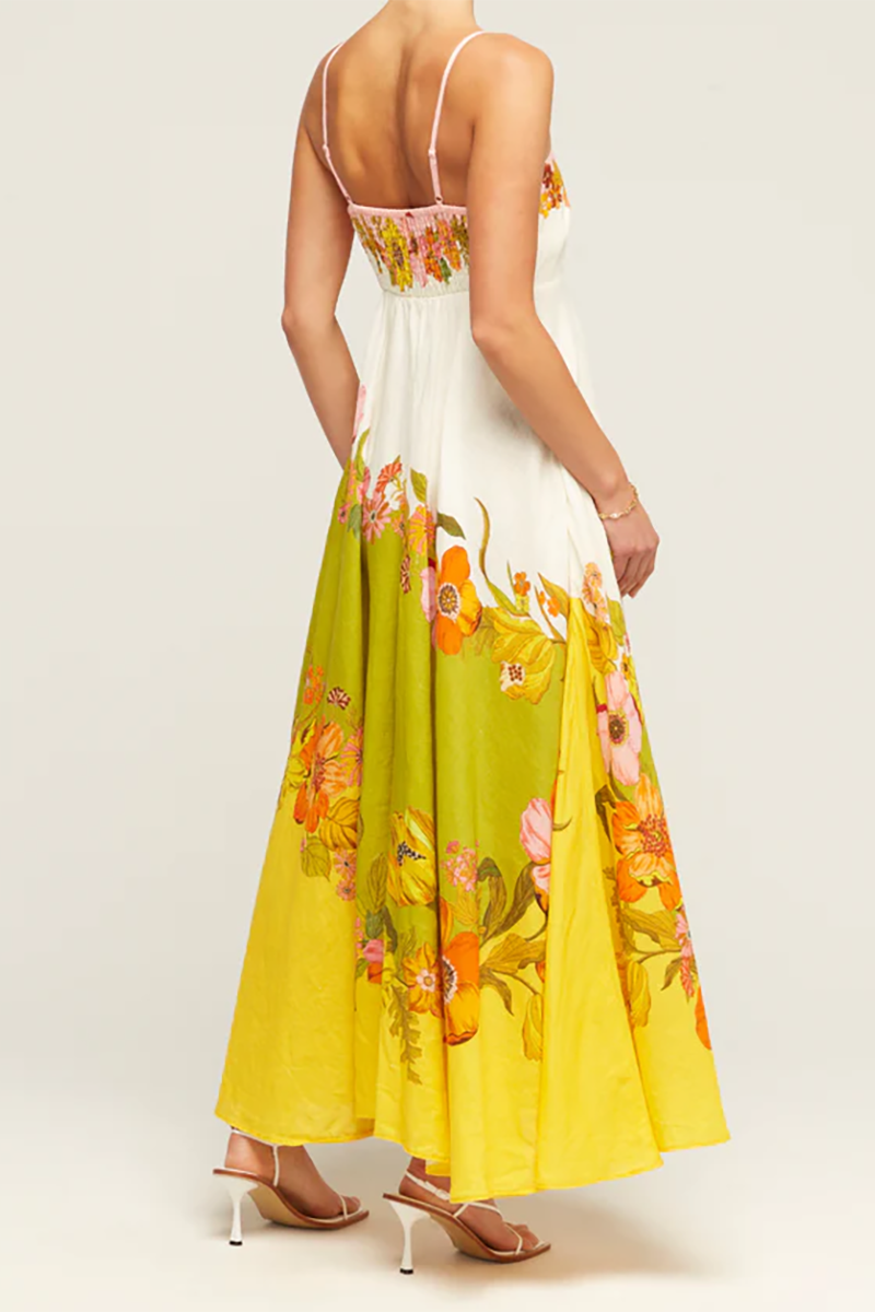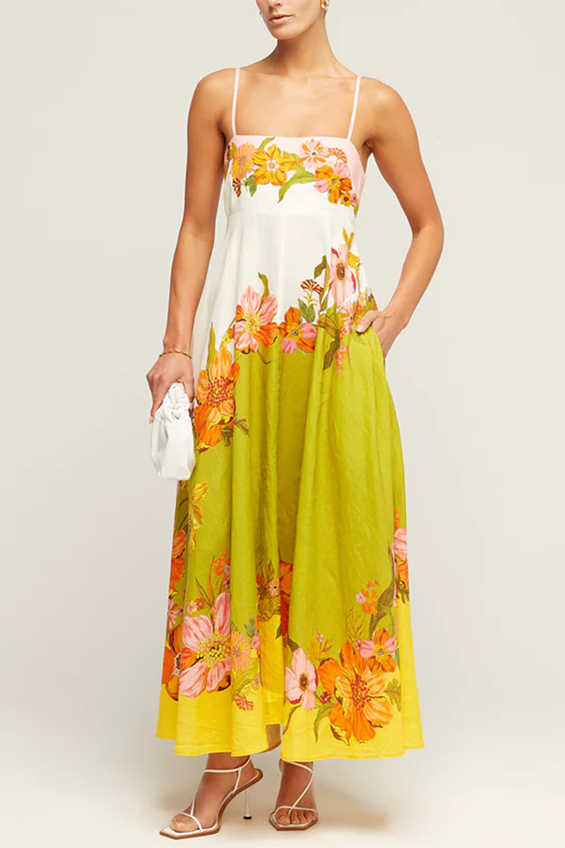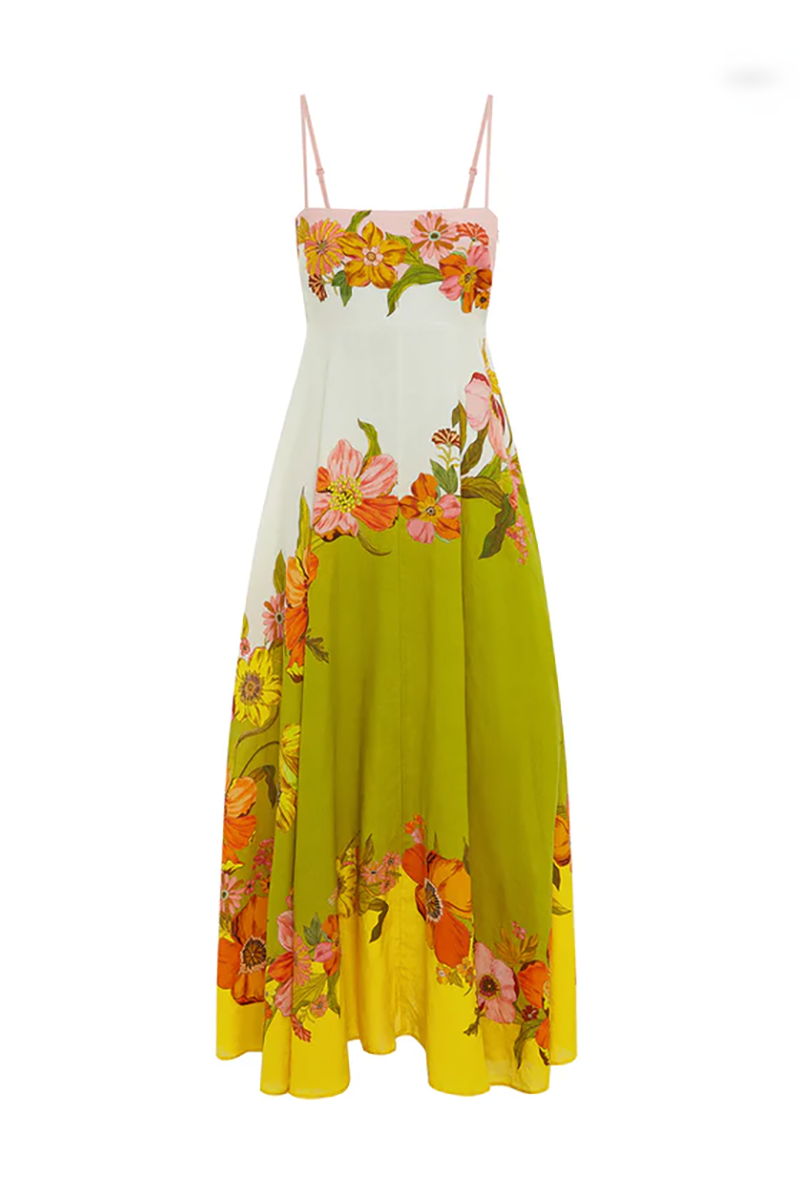 Step into the sunshine with our Silas Sundress from Alemais, a fashion statement that effortlessly captures the essence of summer. This dress is designed to be the epitome of grace, featuring a fitted bodice that falls into an A-line hem and crafted from a flattering floral print in summer hues.