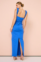 Embody timeless sophistication with the Azul Balconette Gown in Cobalt from Sir. Crafted with ruched straps, bra cup detail, tucks through the body, an invisible zipper at the back, and a back split, this luxuriously-designed gown offers a touch of chic elegance. This dress is the perfect choice for wedding guests, bridesmaids, and special occasions alike.