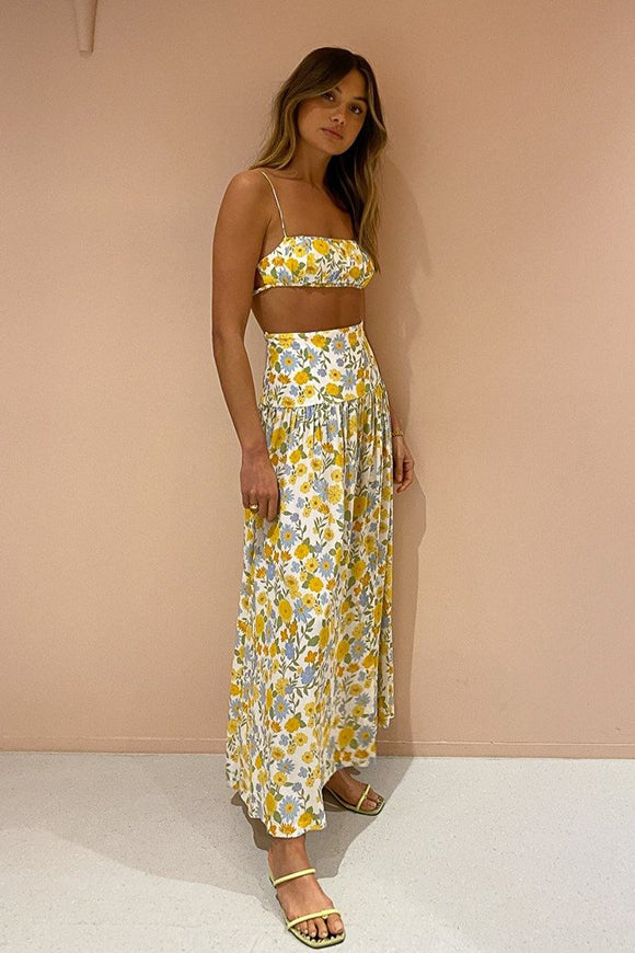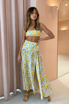 Our Cali Sun Maxi Skirt adds a pop of lemon print to your wardrobe. Made from free flowing silk with an unexpected leg split, the soft silhouette can be styled with your own wardrobe or with our matching cali top. Featuring a high extended waistband and pleating at the hip, it's perfect for weekend brunch with the girls or dressed up for attending your next summer wedding.