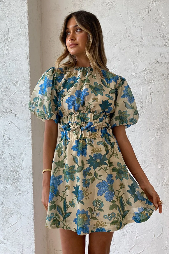 Our Celia Open Back Mini is a gorgeous floral mini for your upcoming events. Crafted from a luscious signature silk cotton blend fabrication in a joyful exaggerated floral print, this mini is fully lined and designed to sit on the neckline. With feminine puff sleeves, an exposed back and an elasticated waist, all eyes will be on you at your next weekend brunch or twilight soiree.