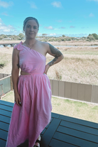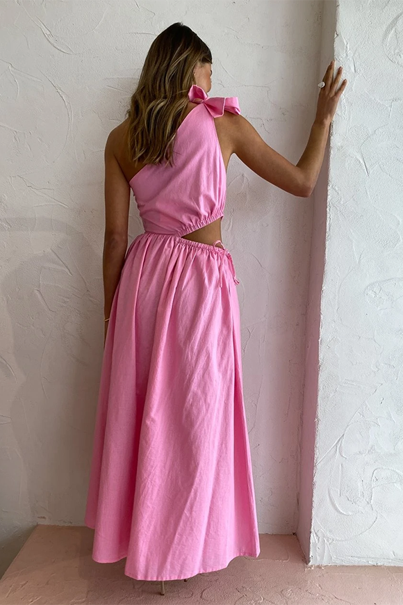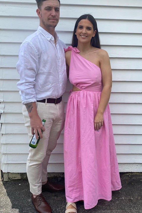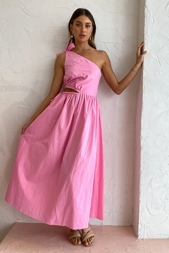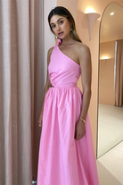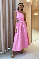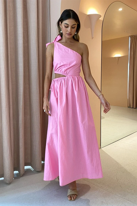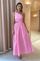 Our Gabriella One Shoulder Midi adds a burst of colour to your revolving wardrobe. With a functional bow at the shoulder, this midi, one-shoulder piece is perfect for summer weddings, races or weekend celebrations.