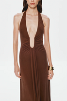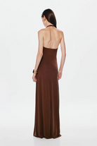 The Jennifer Cupro Maxi Dress in Cedar, a captivating and sexy silhouette that is a true reflection of MISHA's brand DNA.