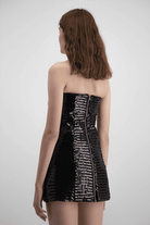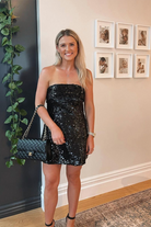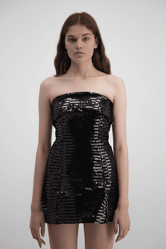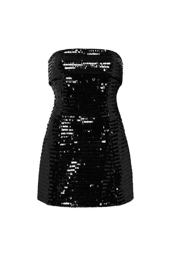 Our Mintie dress is your dream LBD staple. With sparkling sequins and a full length back zip, raw hem and detailing at the bust, this strapless mini is perfect to hire for dancing the night away in.