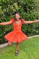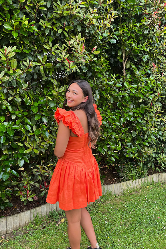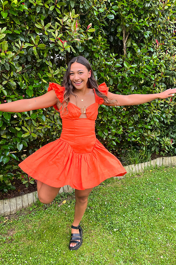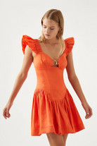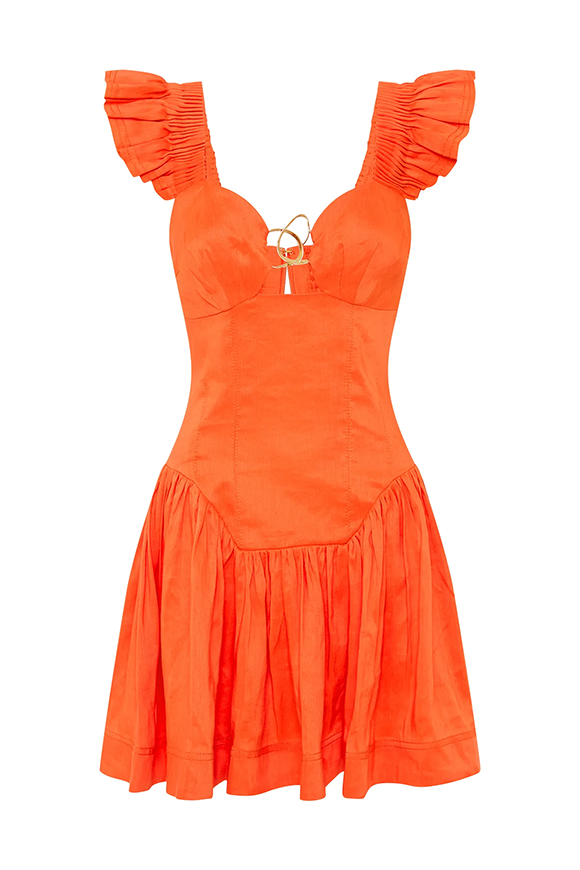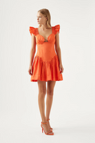 The Simone Frill Sleeve Mini dress is a bold number from Aje. Featuring a sweetheart neckline, frilled shoulder straps and fit-and-flare silhouette, this dress offers a uniquely feminine silhouette and is one of our favourites for weddings and birthday celebrations. With raw edging and signature frills paired with organic shaped hardware, this is a stand out dress that's perfect to hire for your next special event.