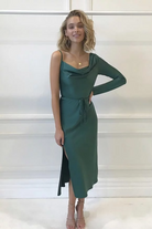 From day to night, our After Dusk Midi is the versatile emerald number your revolving wardrobe most definitely needs. With a cowl neckline, one sleeve design and adjustable straps with gold hardware - this one is perfect to rent for all occasions.