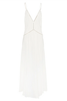 A vision of soft elegance, the Posey Maxi Dress is designed to flatter with a romantic touch. Crafted from a fluid, voile fabric, it features delicate ladder lace trims that trace the plunging neckline and waistline, offering a subtle hint of skin.