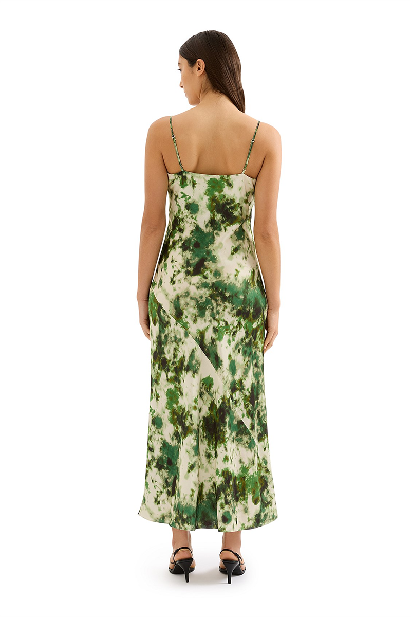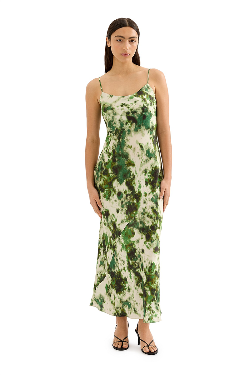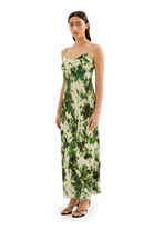 The Cassia Maxi Dress is made in a viscose blend fabrication in Nude Lucy's exclusive Cassia green moss print. Cut on the bias, this silhouette drapes over the body softly and finishes ankle length. Features include a scooped neckline and adjustable thin straps.