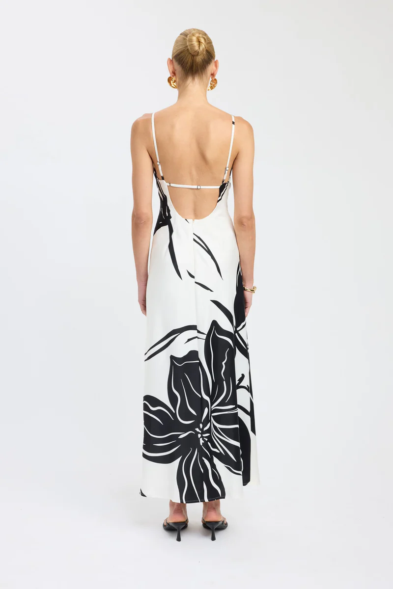 Our Clea Maxi Dress is a stunning embodiment of effortless elegance. Its flowing silhouette and adjustable spaghetti straps create a comfortable and flattering fit, while the low back with strap detailing adds a touch of sophistication. The dress features a captivating abstract floral print in black and ivory, exuding a sense of luxury and exclusivity.