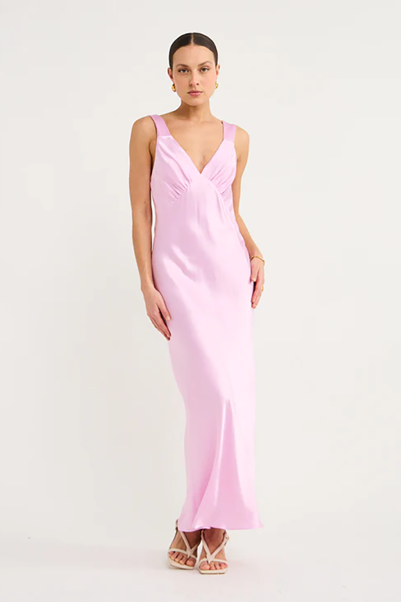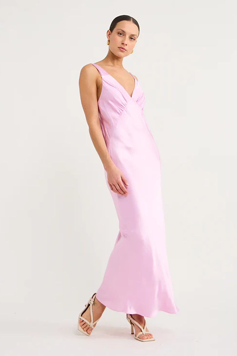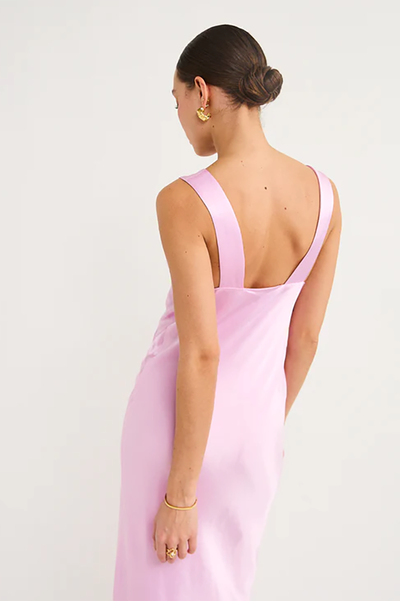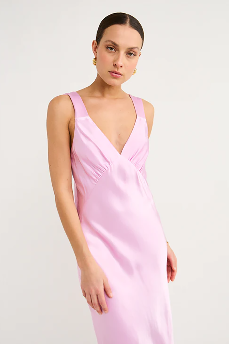 Luxe and feminine, our plunged midi dress from Shona Joy is perfect for all occasions. In a soft peony shade, this dress is crafted from a luxurious silk-touch fabric with a shimmering sheen. With a plunging neckline, ruched bust detail, wide straps, and an exaggerated empire waist - it's one of our favourite pink numbers for birthday outings, bridesmaid duties, date nights or cocktail hour.