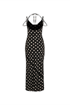 The Gloria Slip Dress by Ruby is the kind of piece you’ll keep reaching for, season after season. Cut on the bias for a flattering, fluid drape, it features a soft cowl neckline and a delicate double strap detail that finishes with a halter neck tie. Crafted in a black and white polka dot crepe with a silk-like feel, it moves beautifully with every step and offers a timeless touch of elegance. A side split adds just the right amount of ease, while the maxi length makes it versatile for both daytime wear and evening occasions.