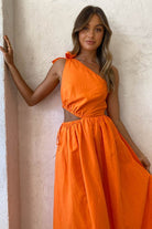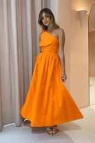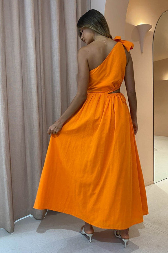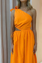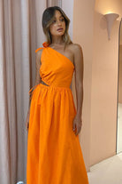 Our Gabriella One Shoulder Midi adds a burst of colour to your revolving wardrobe. Crafted from a Cotton Linen blend fabrication and cut in a one shoulder maxi silhouette, the Gabriella features a functional bow at the shoulder that elegantly falls into a flattering and full gathered maxi skirt. Fitted at the waist and bust with a YKK zip at side seam, this statement silhouette is admired for its waist cutout that adds minimalistic charm taking you from birthday celebrations into winery getaways and wedding festivities.