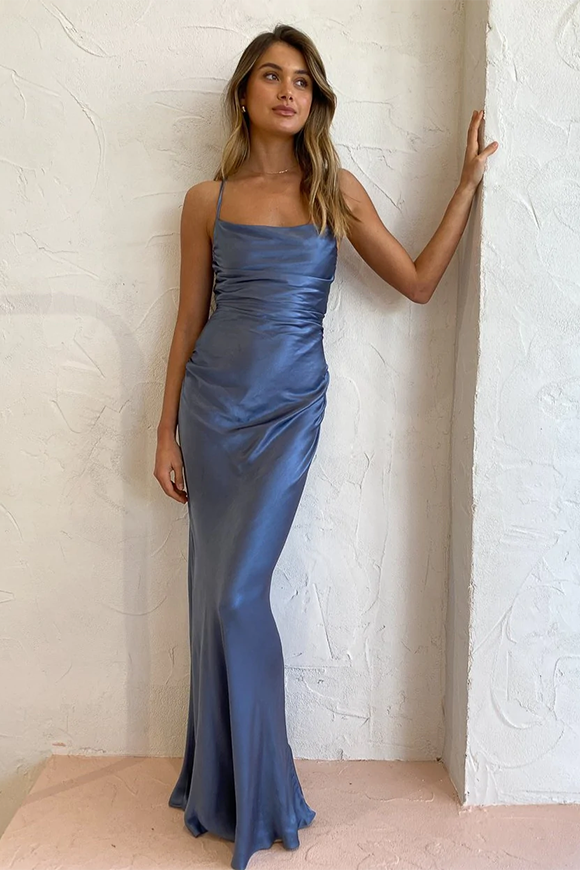A splash of blue we cannot resist -The La Lune Ruched Backless Slip Dress is the perfect addition to your summer formal wardrobe. Cut from a luxurious silk-touch fabrication with a luxurious sheen, this effortlessly refined maxi dress skims and flatters the body in all the right ways for whatever special occasion you may have in your diary. This fun at heart maxi dress blends simple styling with feminine charm. Featuring a beautiful cowl neckline and an unexpected lace back detail it is the go-to maxi to hire for formal occasions, wedding festivities and cocktail hour.