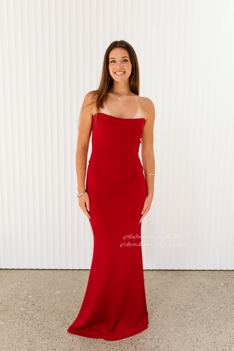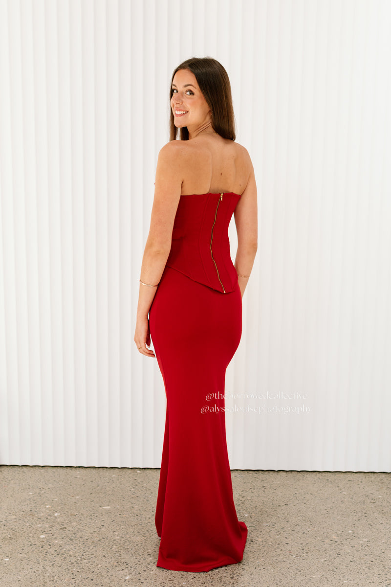 Introducing the Louie Gown a stunning two-piece gown. Featuring a structured corset top and maxi skirt crafted from luxurious buttery fabric, this gown combines style and comfort. Elevate your revolving wardrobe with this versatile piece that exudes sophistication and charm.