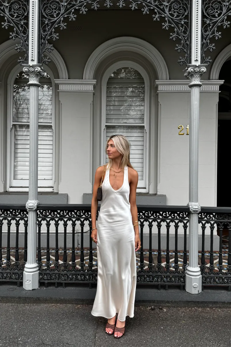 Every seam and stitch reflects dedication to quality. Designed with a detachable scarf that can be worn around the neck, waist, head or arms - this dress is made to move with you. Roma balances structure and softness, offering a refined yet relaxed grace. Whether you’re stepping into a dusk-lit soirée or embracing an afternoon that turns into evening, this is the look that lets you carry yourself with assurance.