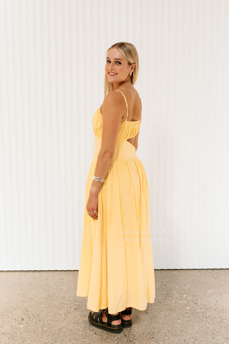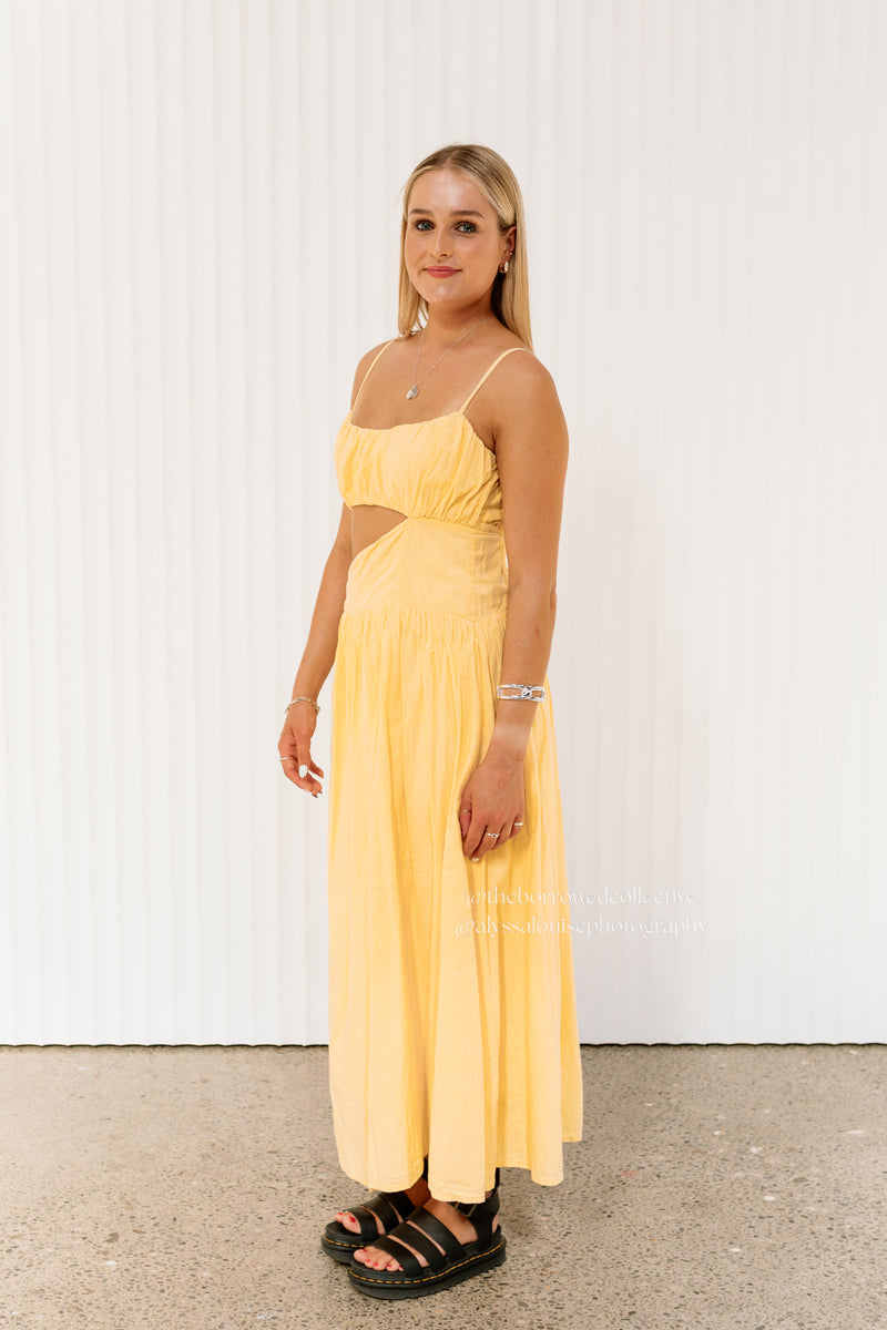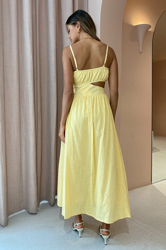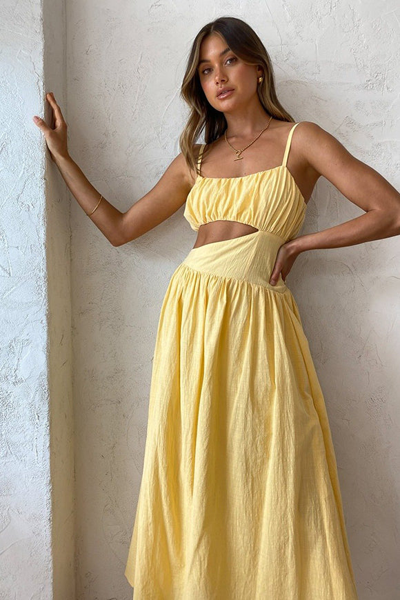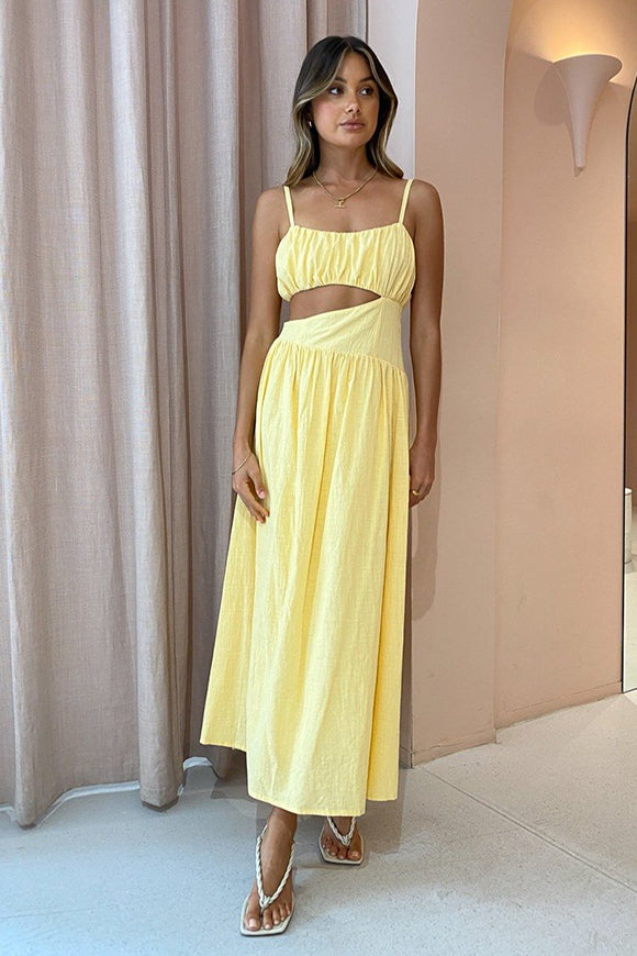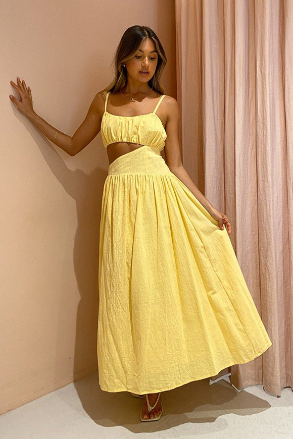 Perfect for summer soirees, our Romantica Maxi dress in this soft butter hue is perfect for the sunshine season. Crafted from a cotton fabrication in a maxi length silhouette with an ultra-flattering silhouette, the Romantica features gathered bust detailing, adjustable shoulder straps and a romantic full maxi skirt.