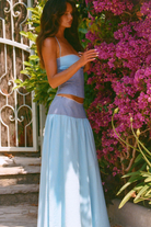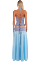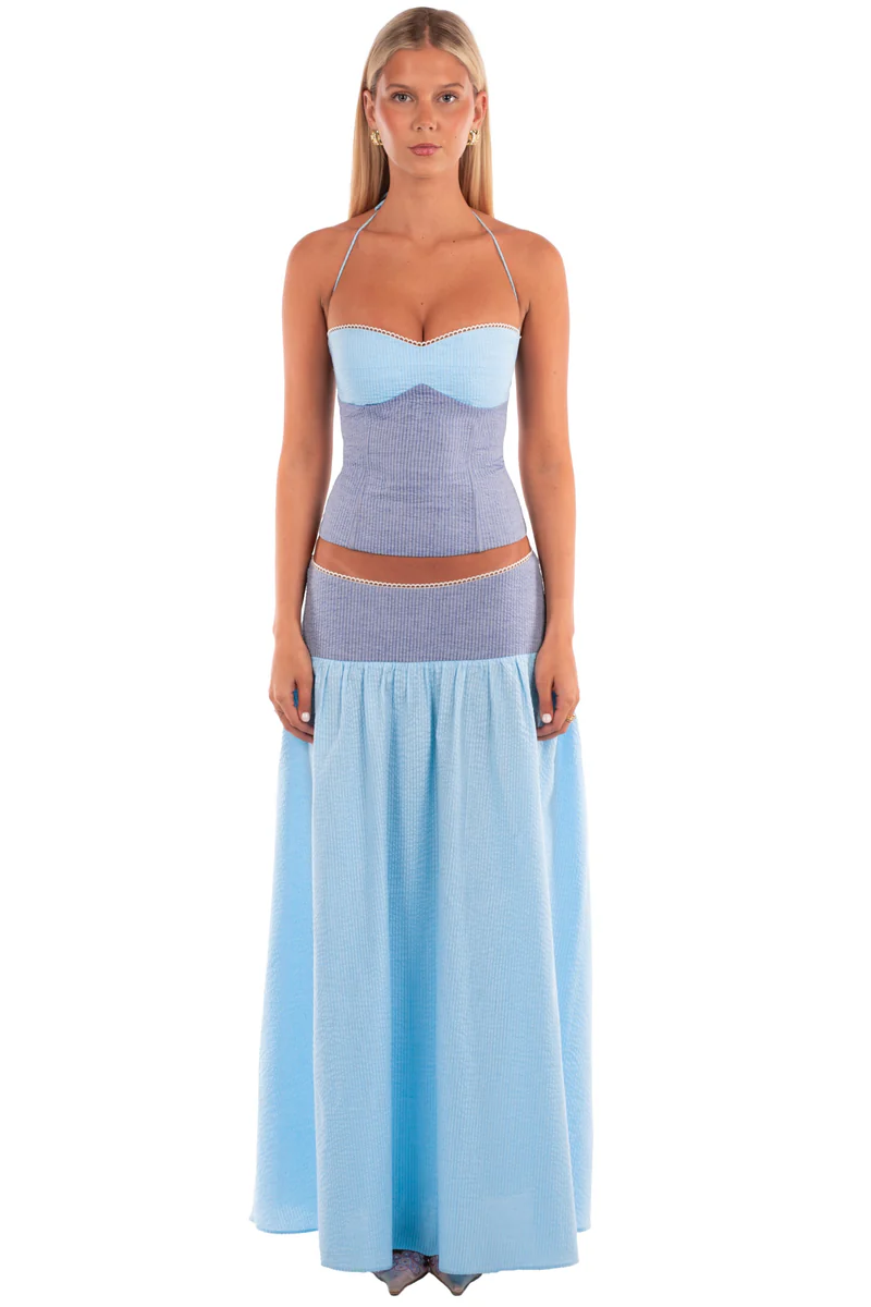 Effortlessly feminine with a nostalgic twist, the Adeline Set is your go-to for timeless elegance with a modern edge. Crafted from 100% cotton in a soft storm blue contrast stripe, this set pairs the structured Adeline Corset with the flowing Adeline Maxi Skirt for a beautifully balanced silhouette.