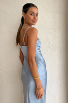 Perfect for any special occasion, the Angelica Keyhole Lace Front Midi Dress in Powder Blue from Shona Joy is a signature silhouette reimagined. Crafted from a silk touch fabrication with a luxurious sheen, this midi dress features a statement lace up front with keyhole detailing before falling into a flattering bias cut skirt. Perfect to hire for life's special moments from wedding celebrations through to birthday milestones and graduation festivities