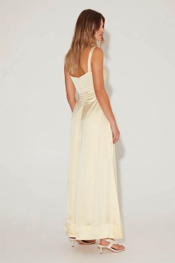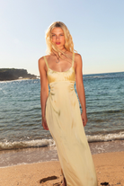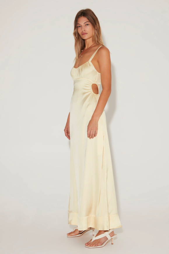 The Carlos Dress cut in a Lemon colour way is a new summer favourite for your revolving wardrobe. Featuring a heavily gathered bust panel with an elasticated neckline, circular cutouts on side seams fixed with elastic and an a-line hem. This is the perfect Christmas Day or New Years Eve Dress.