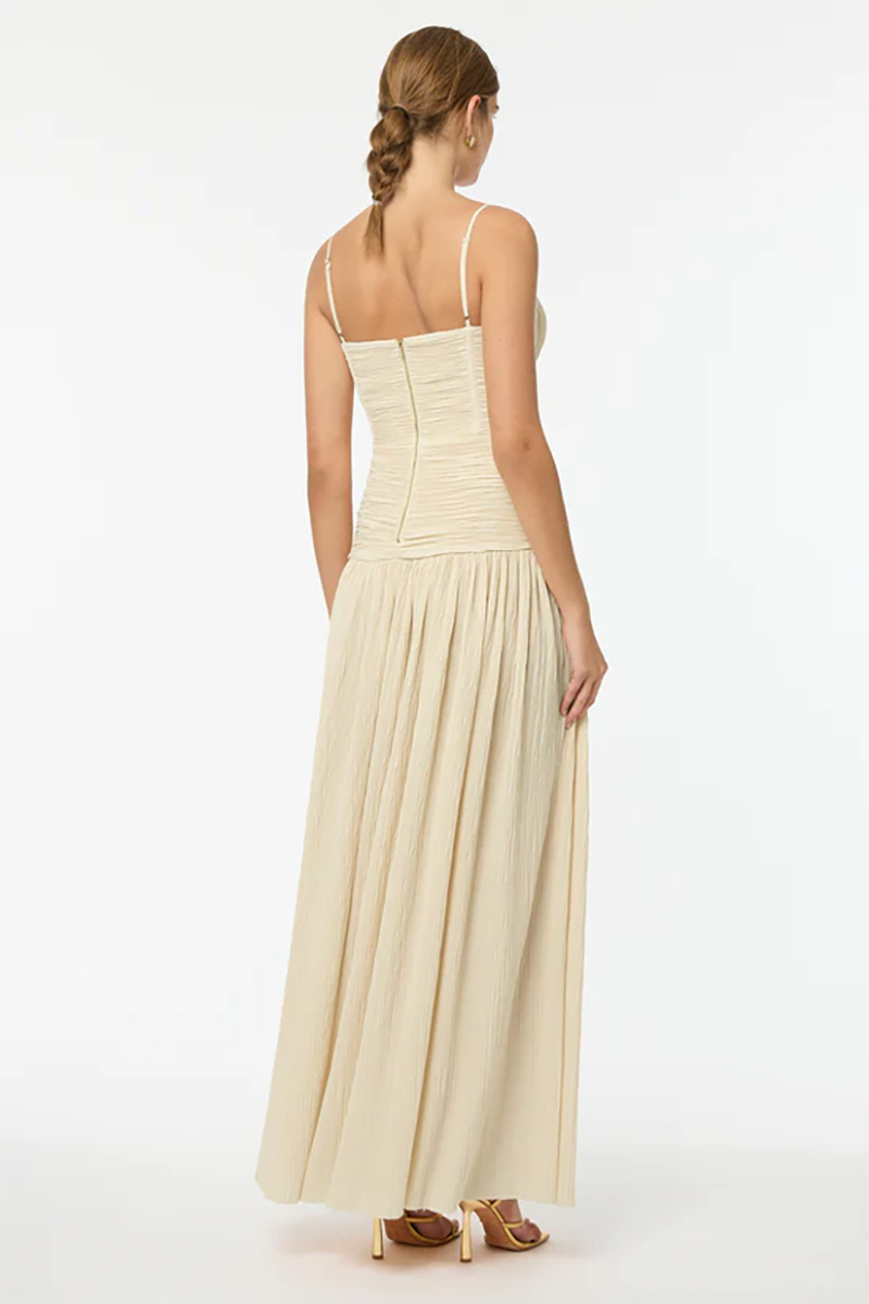 Double Time Pleat Dress in Cream