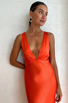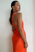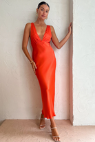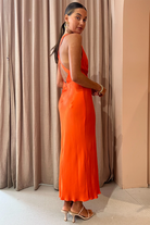 Crafted from a luxurious silk touch fabric, the Milo Plunged cross back dress features an invisible back zip closure and a deep v-neckline with a cross-back detail. In a gorgeous hibiscus shade, this dress is perfect to carry you through wedding festivities, birthday celebrations and those special date-night occasions.