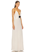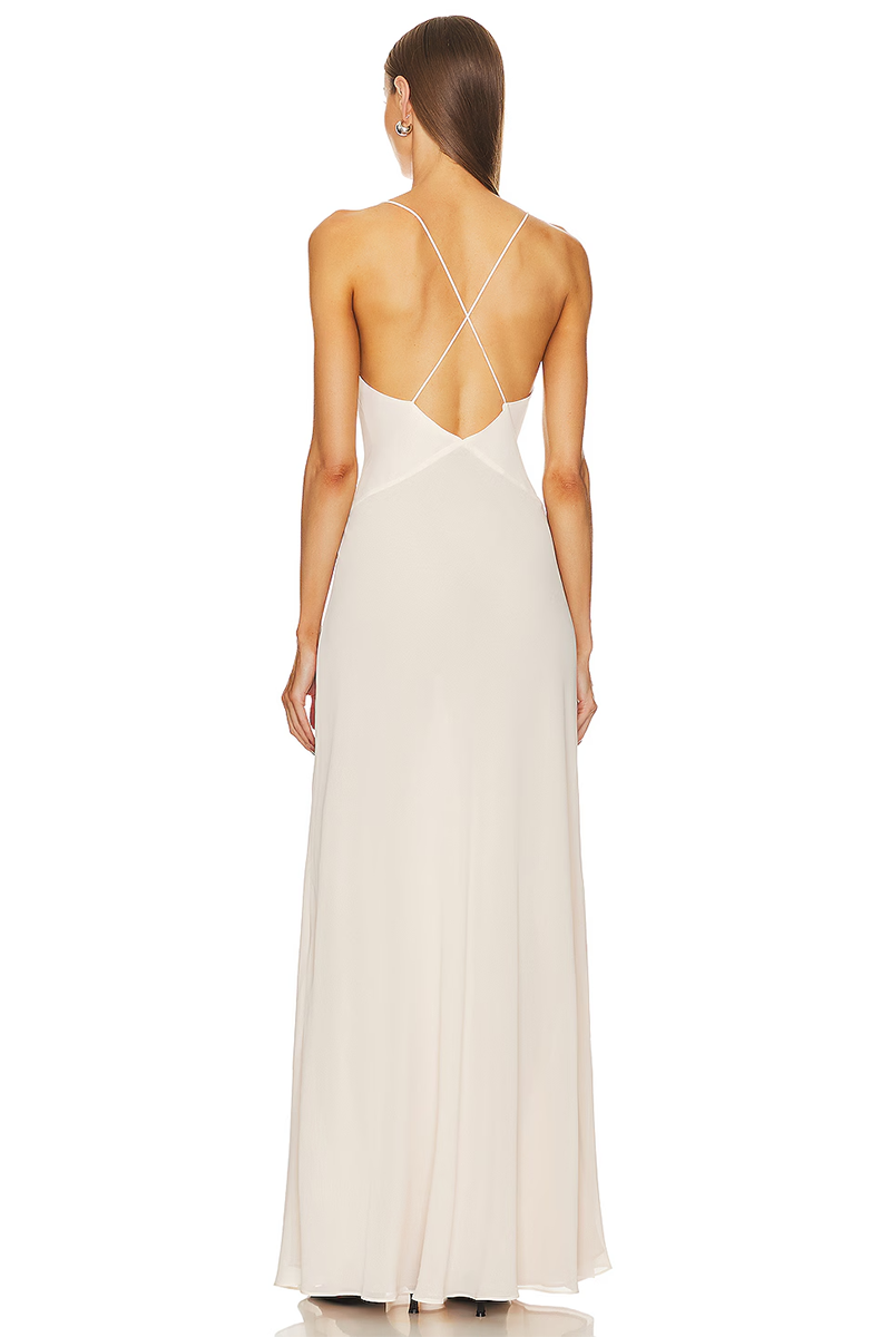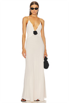 The Helsa Sheer Deep V Long Slip Dress in Cream is a timeless maxi designed in lightweight recycled georgette with a soft lining for comfort. Featuring a plunging neckline with a removable rosette and delicate crisscross back straps, it blends effortless elegance with modern sustainability. Machine washable and made from 100% recycled materials, it’s a chic, eco-conscious choice for any occasion.