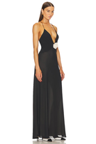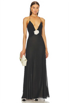 The Helsa Sheer Deep V Long Slip Dress in Black is a timeless maxi designed in lightweight recycled georgette with a soft lining for comfort. Featuring a plunging neckline with a removable rosette and delicate crisscross back straps, it blends effortless elegance with modern sustainability. Machine washable and made from 100% recycled materials, it’s a chic, eco-conscious choice for any occasion.