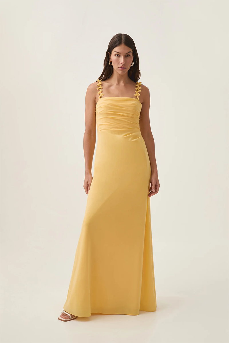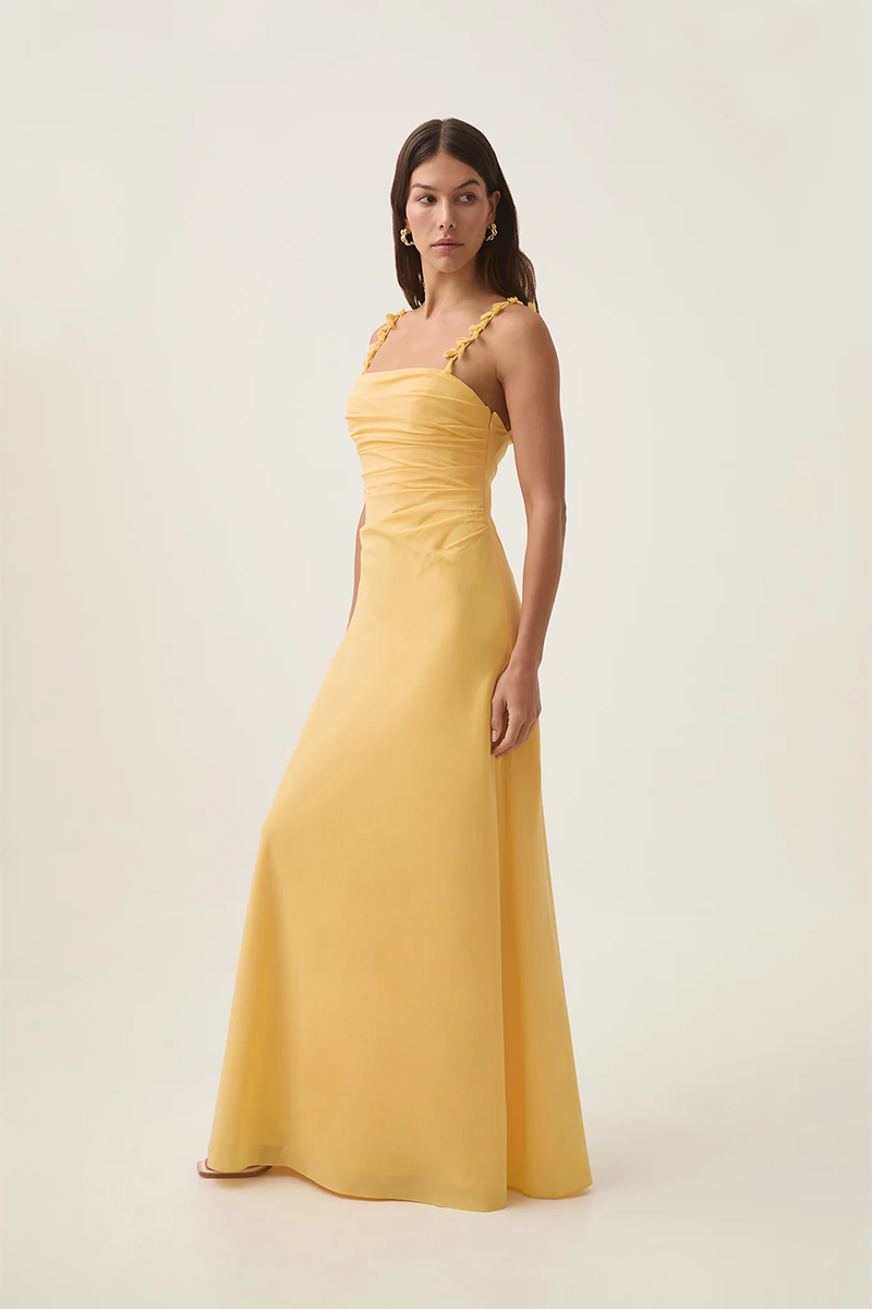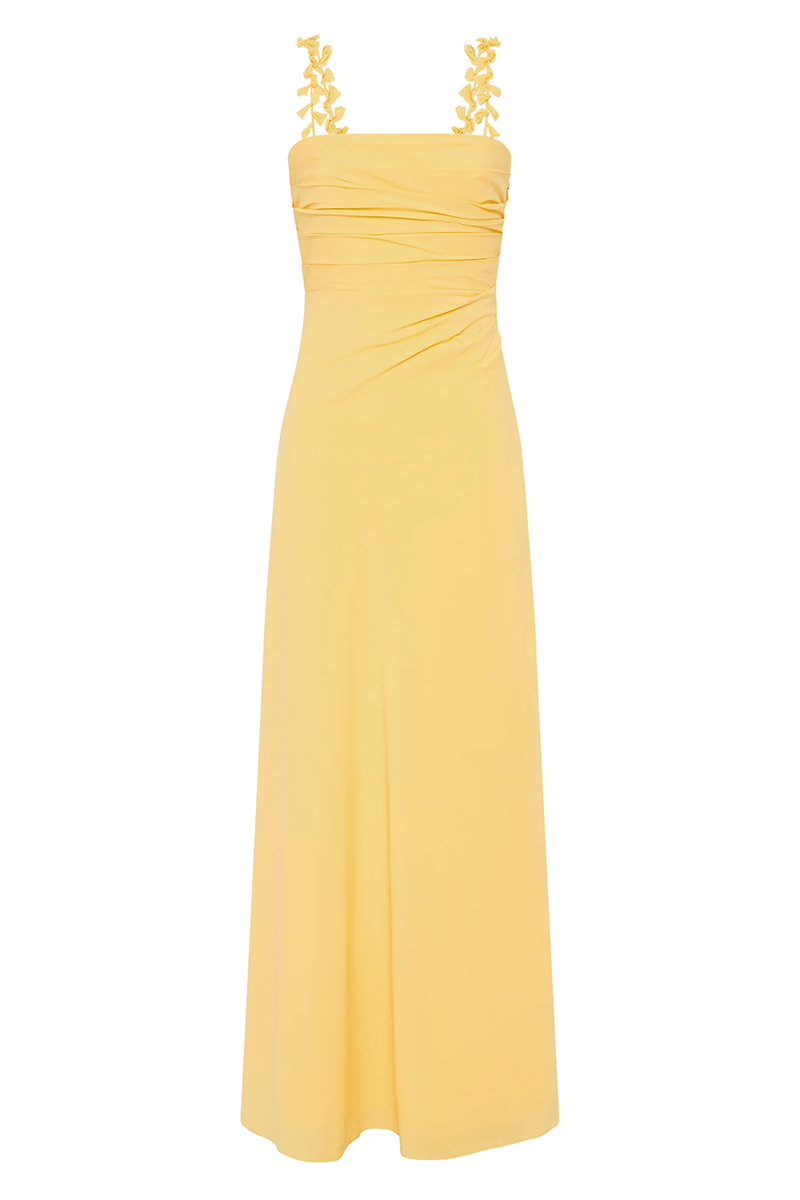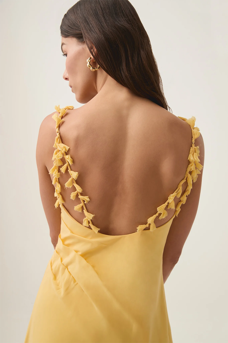 Fully lined for comfort and ease, this midi-length dress effortlessly balances whimsy and sophistication—ideal for long lunches, romantic evenings, or sunny soirees.