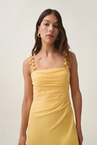 Charming, feminine, and full of personality, the Soulful Pom Pom Midi Dress from Aje is designed to turn heads. Featuring a flattering straight neckline and delicate spaghetti straps adorned with playful pom pom trim, this piece captures a fresh, youthful spirit.