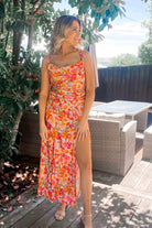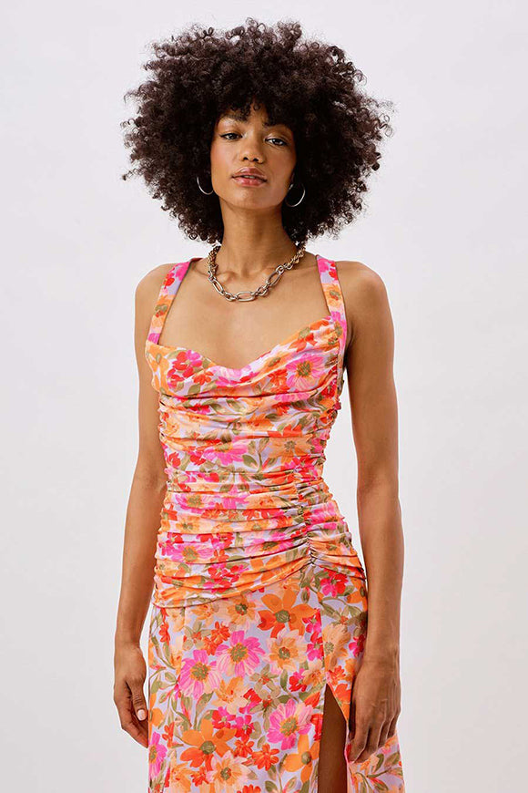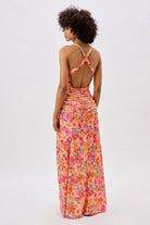 Our Willa Maxi dress is a vibrant, floral number with a tropical print to embrace the vibes of summer. Featuring a sophisticated cowl neckline and shirred hip panel, the crossover straps and dramatic open back will have all eyes on you at your next special occasion.