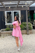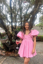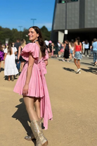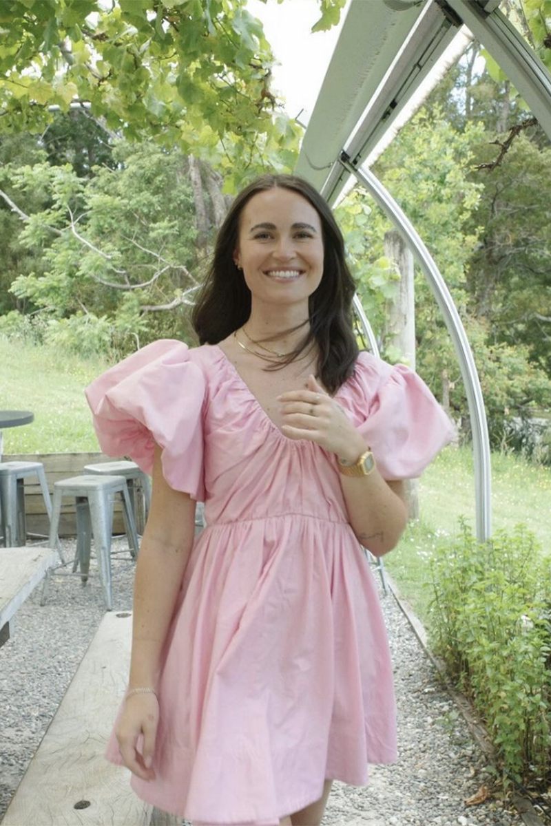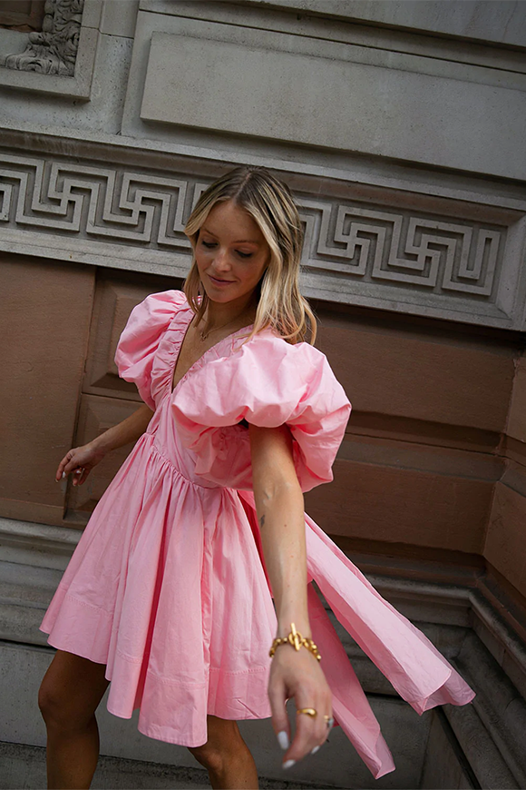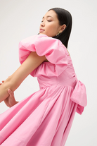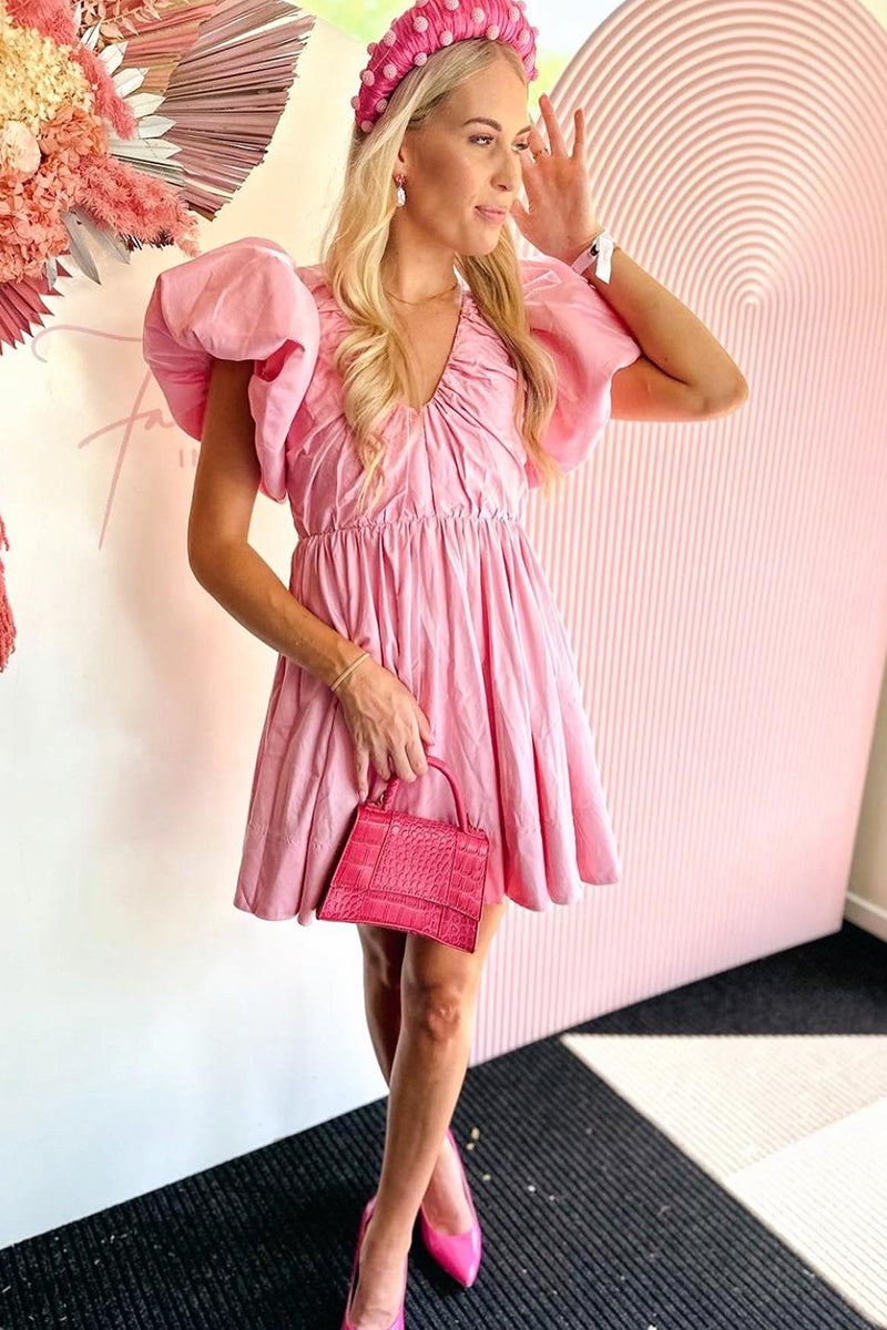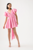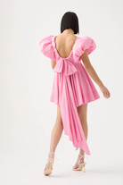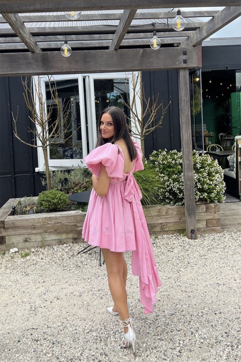 Pretty in pink, the Gretta Bow Back Mini from Aje has been constructed in a show-stopping fit-and-flare signature silhouette. With exaggerated tulip sleeves, a deep scoop neck and a self tie draw cord through the back, this mini dress is a gorgeous rental perfectly paired with strappy heels for garden weddings, birthday celebrations and special events.