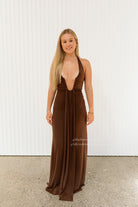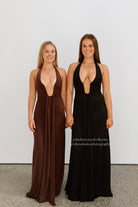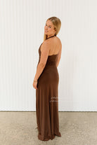 The Jennifer Cupro Maxi Dress in Cedar, a captivating and sexy silhouette that is a true reflection of MISHA's brand DNA.