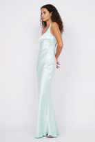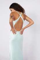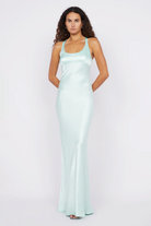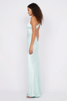 The BEC + BRIDGE Maxina Crossover Dress in Mint is a refined statement piece designed for elegant occasions. Crafted from the brand’s signature light-catching Katella fabric, this bias-cut maxi dress drapes beautifully over the body, enhancing natural movement and grace. The scoop neckline is complemented by a delicate underbust seamline and darts, offering a structured yet effortless fit. At the back, slender shoulder straps cross over to create a striking open-back detail, adding a touch of modern sophistication. An invisible zipper at the center back ensures a seamless finish. Designed to skim the silhouette, this dress offers a flattering fit perfect for all occasions.