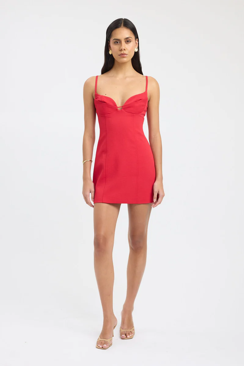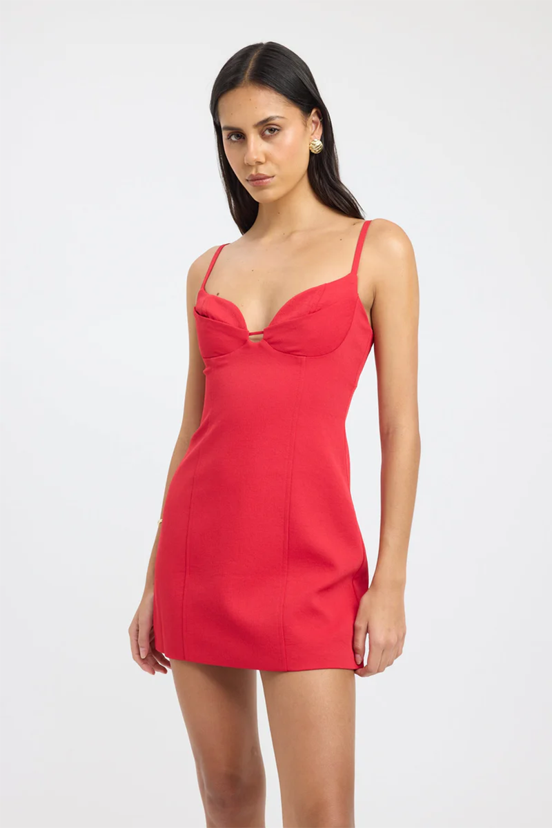 Make a confident statement with the Oyster Bra Dress in Tango Red. Featuring a flattering sweetheart neckline, subtle bra detailing at the centre of the bust and panel detailing on the cups and bodice, this dress combines style with structure. The snap back clasp ensures a seamless fit, delivering a making a memorable impression.
