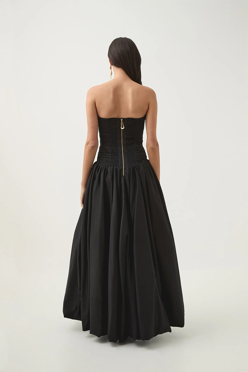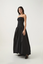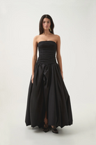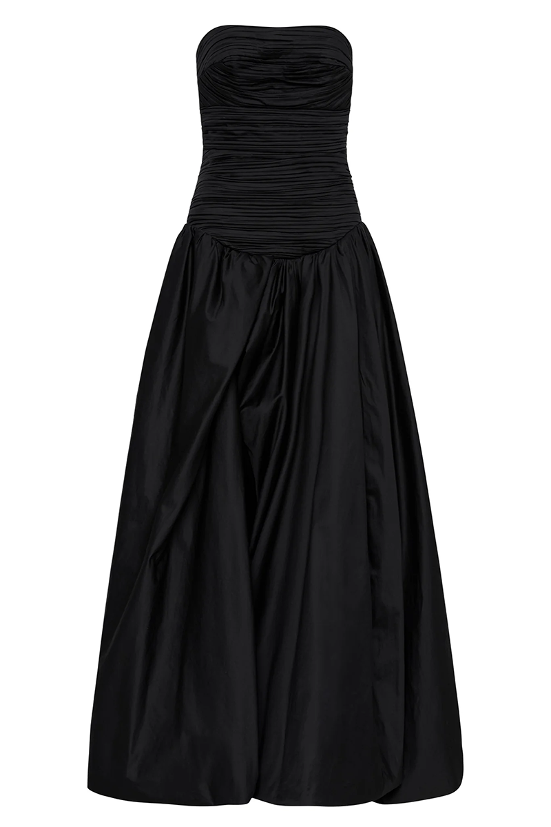 Exude dramatic elegance when you hire the Violette Bubble Hem Maxi Dress. Ruching defines the fitted bodice while an asymmetrical high-low hem balances volume and proportion. Dress this timeless rental up with delicate jewellery and strappy heels, or offset the drama with easy flats.